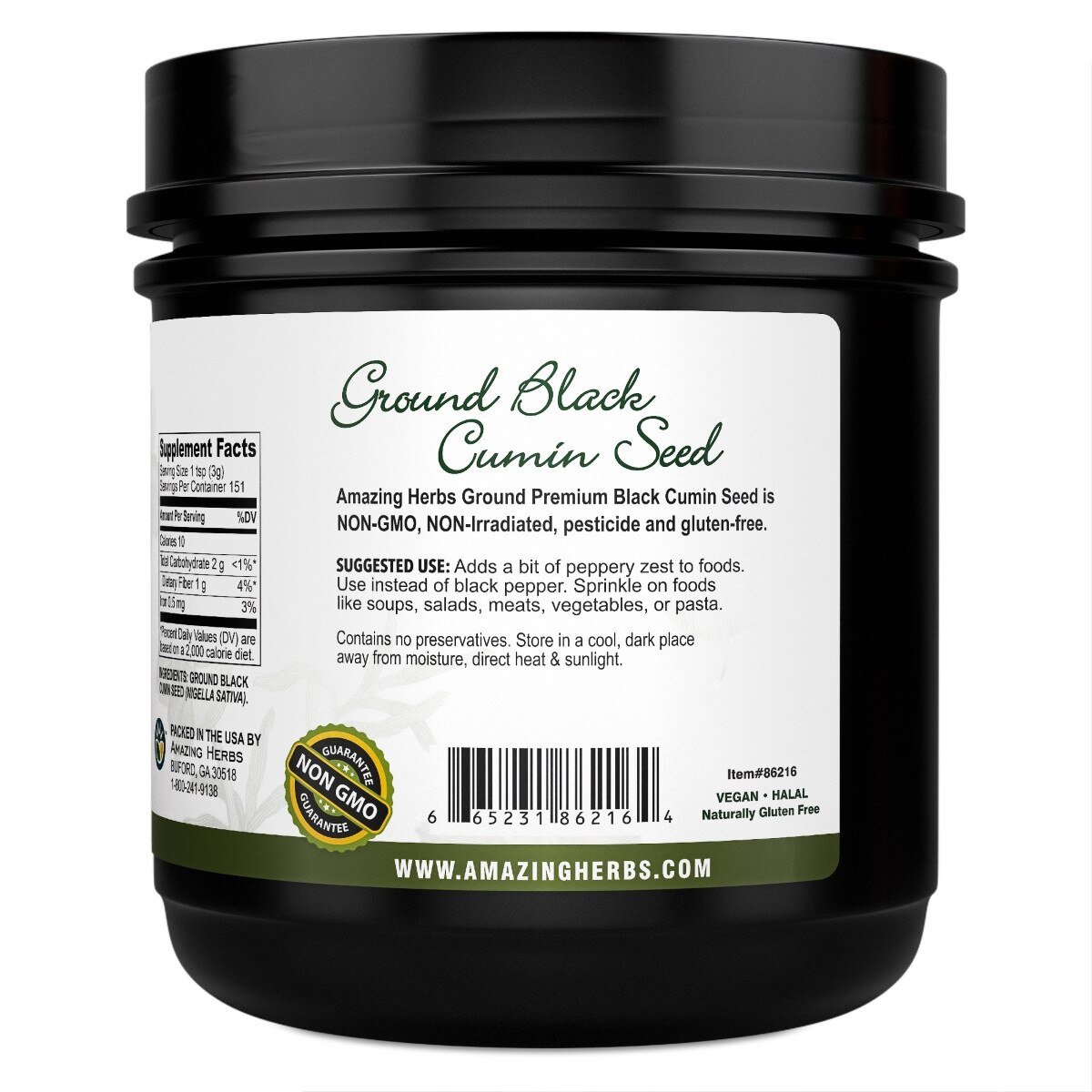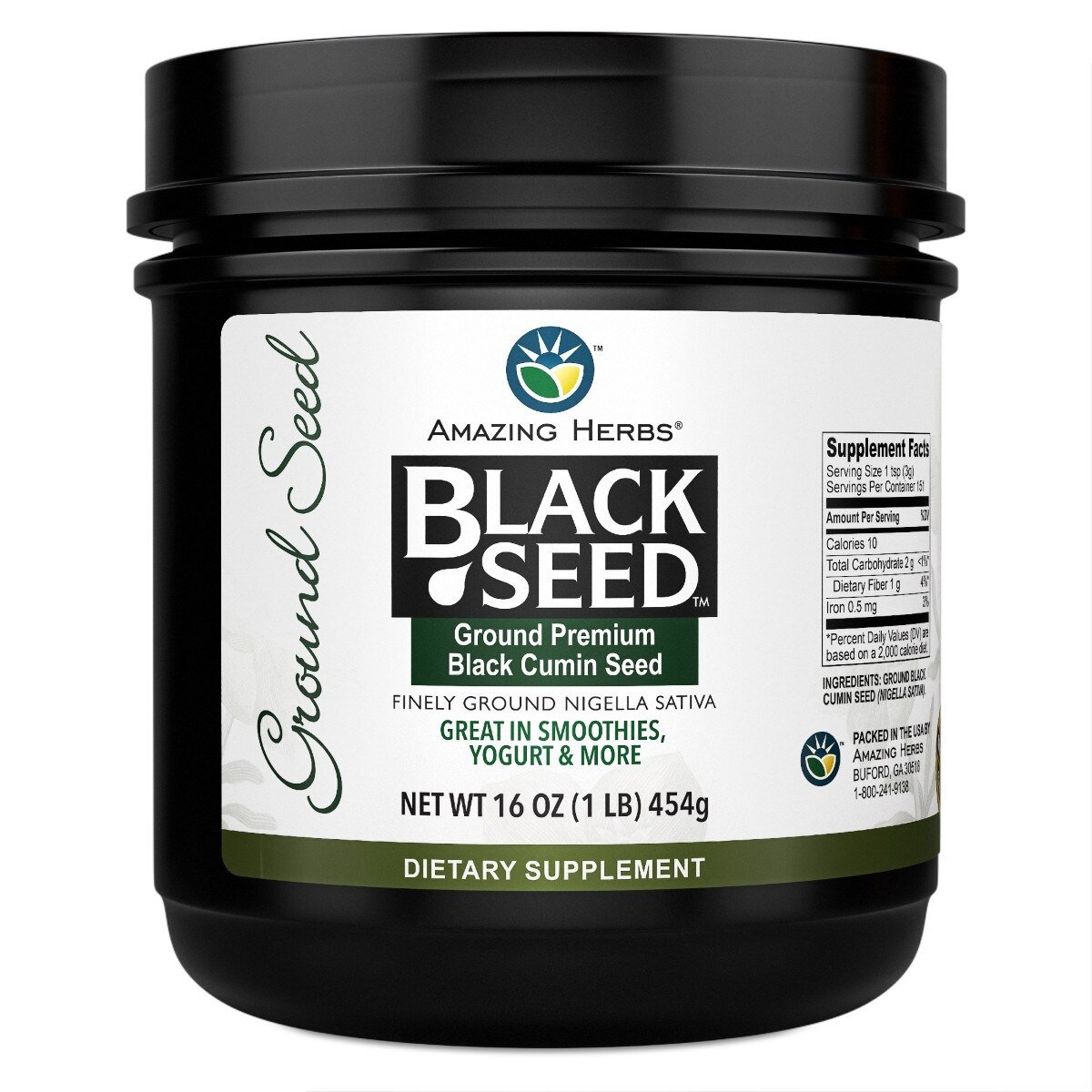 Finely ground Black Seed ground Seeds by Amazing Herbs deliver potent and effective bioactive compounds for enormous health benefits. This Black Cumin Seed powder significantly supports cardiovascular function, preserves digestive health, assists the immune system, and aids lung function. It’s specifically designed for those looking for a Whole Black Cumin Seed replacement.