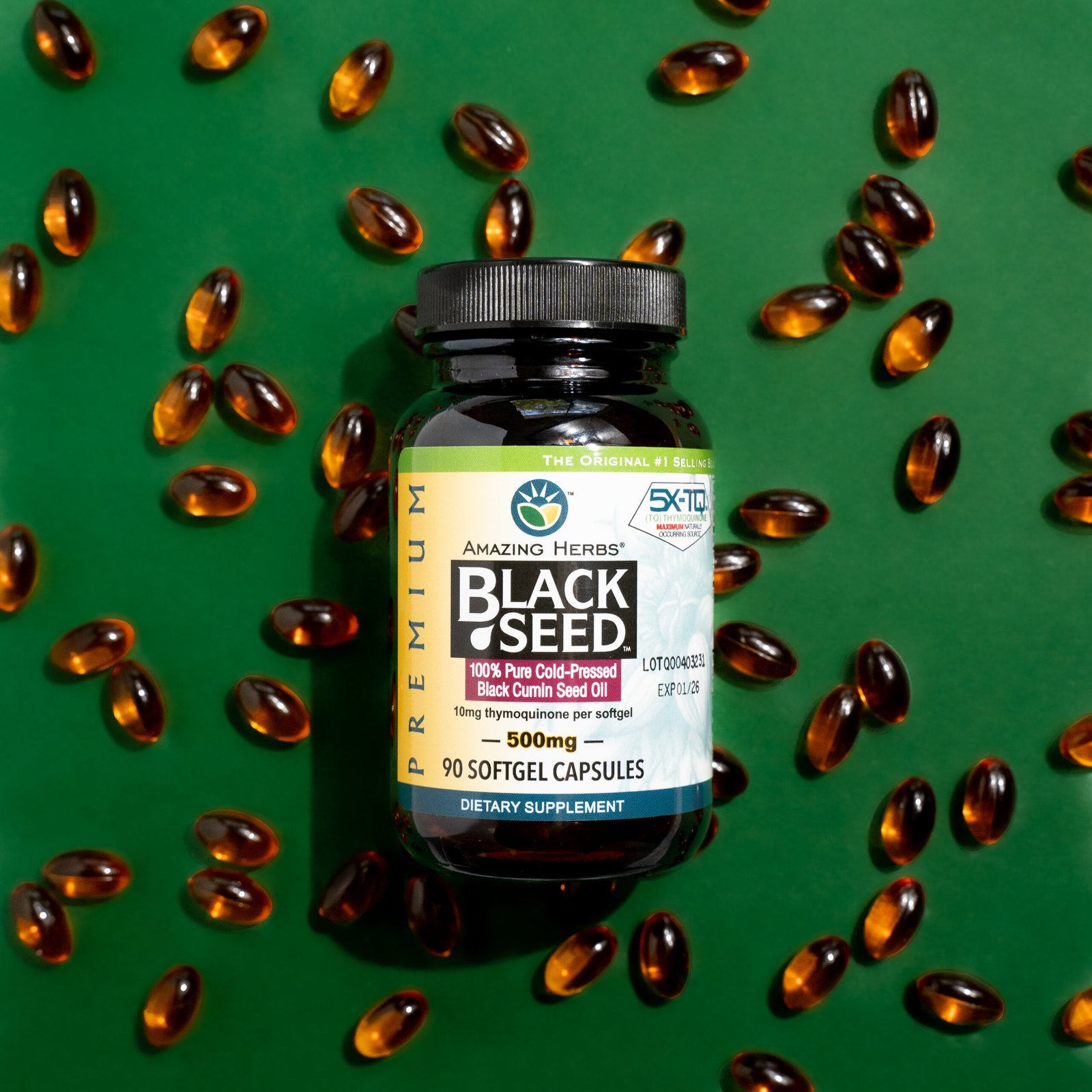 We use only high-grade Nigella sativa seeds to ensure the best Black Seed Oil capsules. This premium quality allows you to reap the benefits of Black Seed Oil and improve your health. Amazing Herbs Black Seed Oil Softgels can support cardiovascular function, promote healthy joints, aid the immune system, and much more!